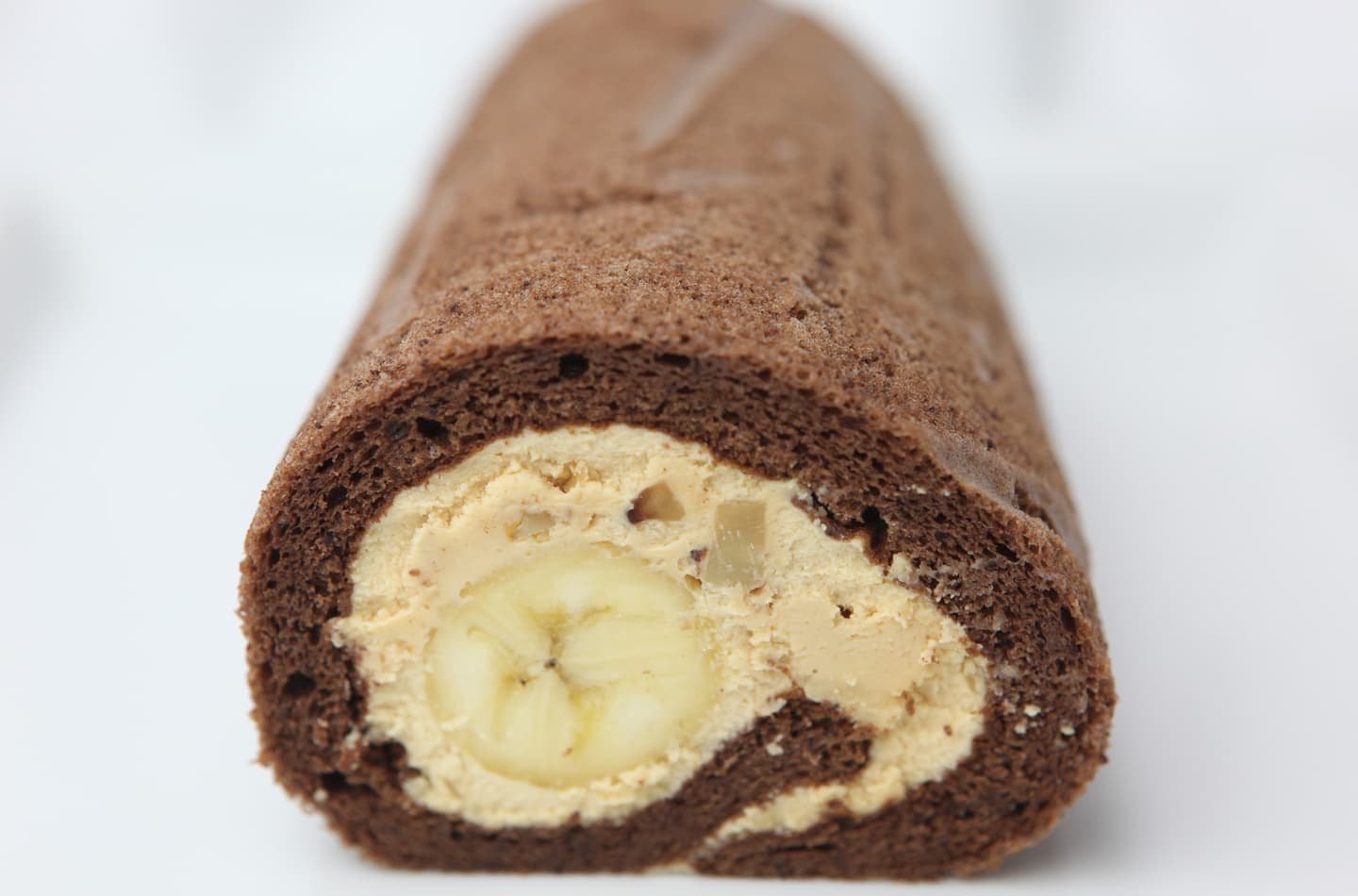 ショコラ生地で「キャラメルクリーム」「バナナ」「ナッツ」を