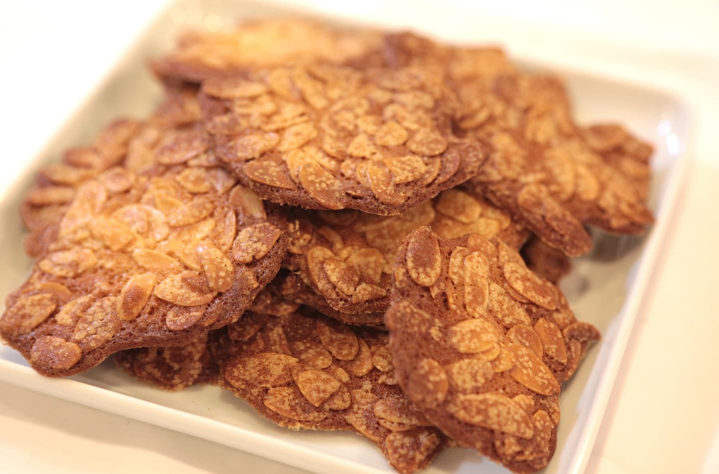 手作りのアーモンドプラリネをダクワーズ生地にサンドした、とても香りのいいお菓子